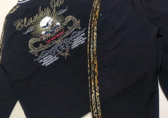このブランドが支持された理由は、その圧倒的な「威厳」にあります。刺繍の密度が非常に高く、龍や虎、あるいはブランドロゴが立体的に浮かび上がるような加工は、見るからに手間がかかっており、着ている者に独特の迫力を与えていました。流通量自体がそれほど多くなかったこともあり、地元でも「アイツはブランキージェットの新作を着ている」と噂になるほどのステータスがありました。いわば、ヤンキー界における「知る人ぞ知るハイエンドブランド」のような立ち位置だったわけです。デザインの傾向としては、黒を基調としたものが多く、そこに金や銀、白の刺繍を施すことで、夜の街に映える「ギラつき」を演出していました。これが、当時の職人層やVシネマに憧れる少し上の世代からも熱烈な支持を受ける要因となっていました。