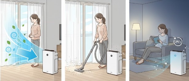空気清浄機を効果的に使うための鉄則は、「24時間365日の連続運転」です。電気代を気にして「帰宅したときだけつける」「寝るときだけつける」という使い方は、アレルギー対策としてはあまり意味がありません。