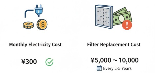 電気代やフィルター交換費用などのランニングコスト