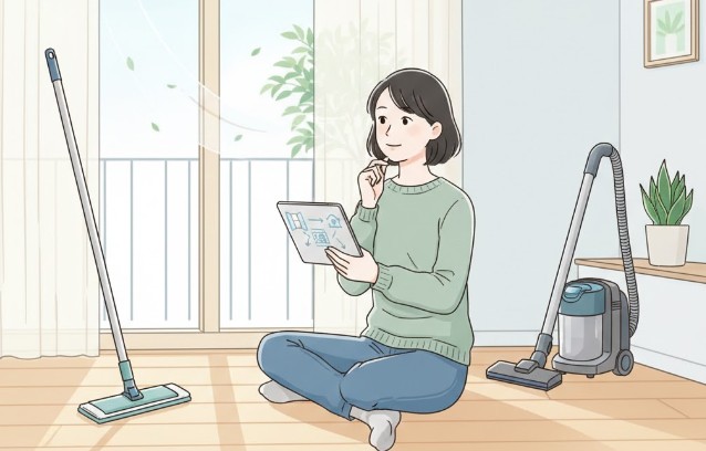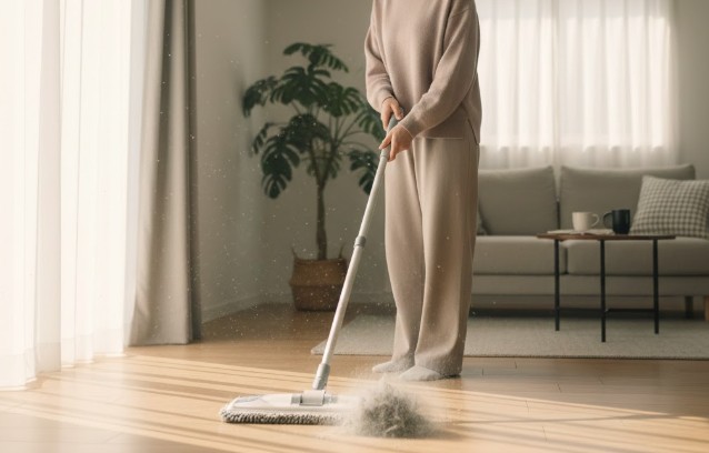 「空気が汚れる原因」の多くは、実は空気中にあるのではなく、床や家具の上にあります。空気清浄機がいらない派の人たちが実践しているのが、「汚れる前に物理的に取り除く」という戦略的な掃除です。空気中のホコリは、人が動かない夜間に床へとゆっくり落下していきます。そこで、朝起きてすぐ、人が動き出す前にフロアワイパーで床を「乾拭き」してみてください。これだけで、日中に舞い上がるはずだったホコリの大部分をキャッチできます。掃除機をいきなりかけると、排気でホコリを舞い上げてしまうので、まずは静かに拭き取るのがコツです。