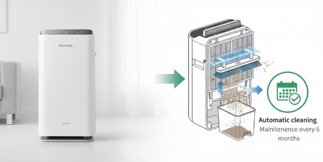 24時間つけっぱなしにする際、唯一の弱点とも言えるのが「フィルター掃除の頻度」です。空気を吸い込み続ける以上、どうしてもホコリは溜まります。これを「面倒くさい!」と感じる方に全力でおすすめしたいのが、シャープのハイグレードモデル(KIシリーズなど)に搭載されている「プレフィルター自動掃除機能」です。