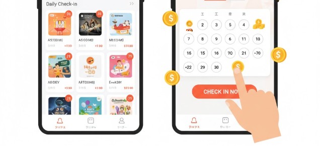 まず、アリエクのアプリを開くと、ホーム画面の左上あたりに「コイン」のアイコンがあるはずです。ここをタップすると専用の画面に飛び、そこにあるチェックインボタンを押すだけでその日の報酬が確定します。非常にシンプルな動作ですが、ここには強力な「継続報酬(ストリーク)」のロジックが組み込まれています。初日は20コイン程度かもしれませんが、2日、3日と続けていくうちに、もらえる額が段階的に増えていきます。最長ストリークに達すると、1日あたり70コインから100コイン以上が安定して手に入るようになるんです。