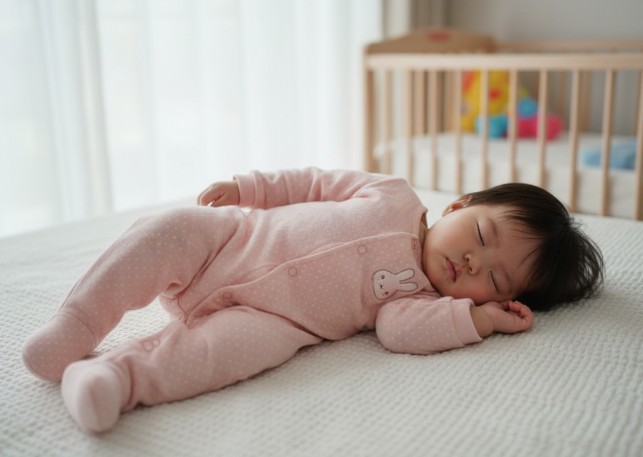 赤ちゃんが寝る時に足つきロンパースを着せる場合は、日中以上に細心の注意が必要です。前述の通り、足の裏を覆うことで熱がこもりやすくなるため、睡眠中の体温が必要以上に上がりすぎてしまう危険性があるからです。安全で快適な睡眠環境を整えるためのポイントを具体的に解説します。