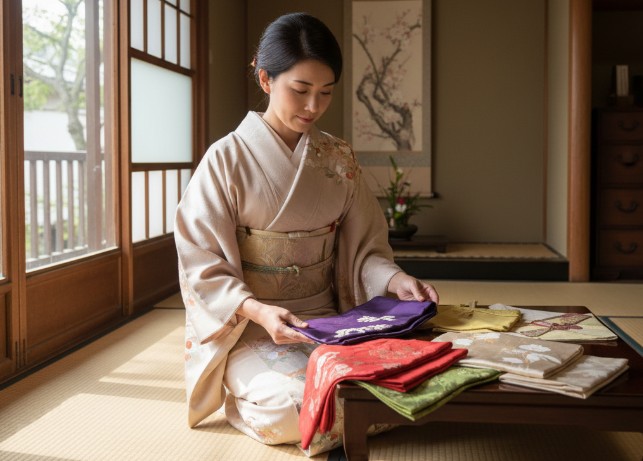 袱紗は単なる布ではなく、長い歴史の中で育まれた日本の礼儀作法を象徴するアイテムです。その背景を少し知ることで、選び方にも深みが増すでしょう。ここでは、「形」「素材」「色」「柄」という4つの観点から、その選び方を詳細に解説します。