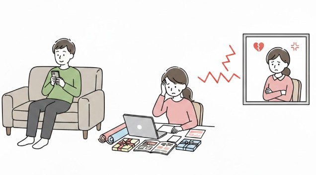 多くの家庭で最大の問題となっているのは、実は義母そのものよりも、その間に立つ「旦那さん」の存在です。本来、母の日は「実の子」が「実の母」に感謝する日であり、義理の娘である嫁はあくまでサポーターの立場に過ぎません。しかし、日本の家庭文化では、こうした行事の段取りやギフト選びが、なぜか「妻の役割」として自動的に割り当てられてしまうことが多々あります。旦那さんが自分の母親のことなのに「適当に何か送っておいて」「君のセンスに任せるよ」と丸投げし、挙句の果てに配送手配やメッセージカード作成まで妻に押し付ける。この無責任な態度こそが、妻を「何もしない」という決断に追い込む真犯人です。