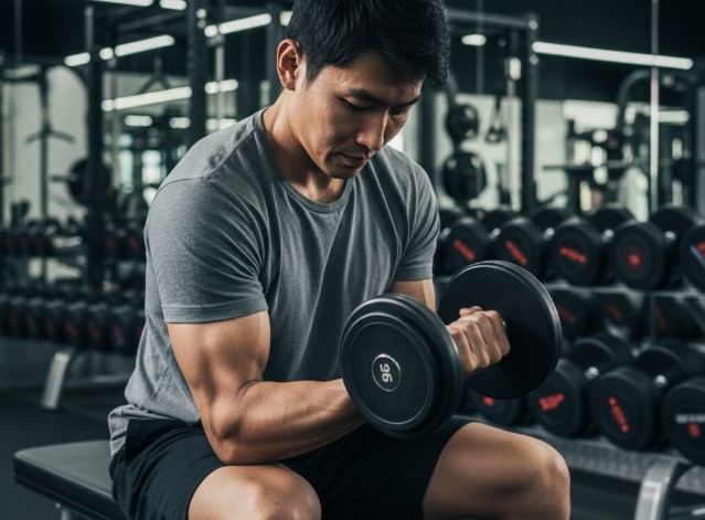 前腕を効率よく肥大させるという点において、ハンドグリップとよく比較されるのが「リストカール」です。リストカールはダンベルなどを持ち、手首の関節を動かすことで前腕の屈筋群に直接、強い張力をかけ続けることができます。ハンドグリップが「指の保持」に近いのに対し、リストカールは「筋肉の伸び縮み(エキセントリックとコンセントリック)」を大きく使えるため、筋肥大のスイッチが入りやすいという特徴があります。