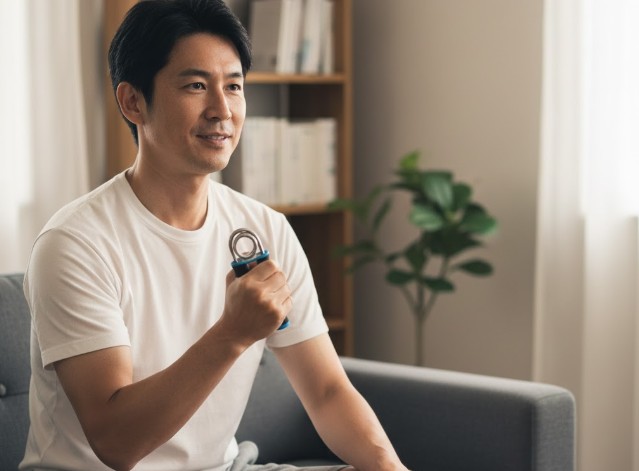 このトレーニングのポイントは、握っている最中に呼吸を止めないことです。呼吸を止めると血圧が上がりやすくなるため、リラックスして深呼吸を繰り返しながら行いましょう。また、握る強さを一定に保つために、デジタル表示付きのグリッパーや、握る強さを測れる握力計を併用するのもおすすめです。「こんなに軽くていいの?」と感じるくらいの負荷こそが、血管ケアには最も効果的なんですね。もちろん、体調が優れない時や、動悸・めまいを感じた際はすぐに中止して、無理をしないようにしてください。