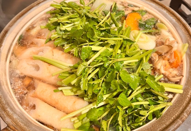 きりたんぽ鍋のセリの根っこが持つ役割と風味の秘密