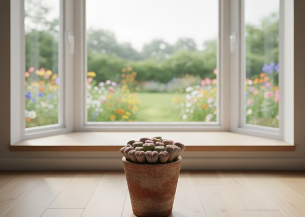 リトープスの育て方において、室内での置き場所は非常に大切な管理ポイントです。リトープスは日光を好む植物であり、十分な光がないと徒長(とちょう)してしまいます。
