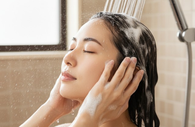 予洗いをしっかりとする: シャンプーをつける前に、お湯だけで1〜2分間、髪と頭皮をしっかりと洗い流します。これだけで汚れの7〜8割は落ちると言われており、シャンプーの使用量を減らせます。