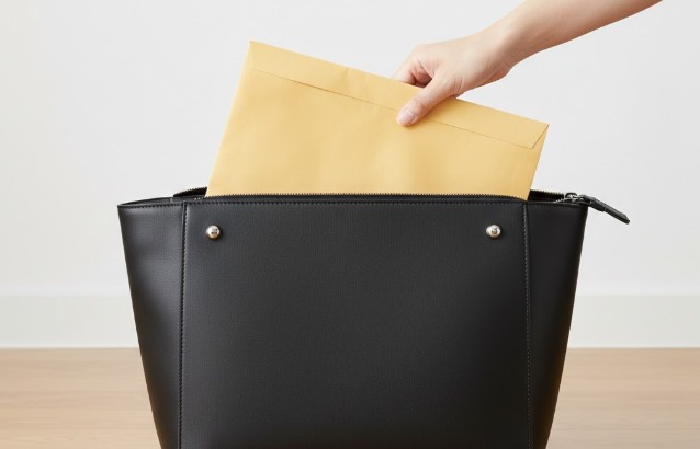 「見た目さえ良ければいい」と思われがちなカバンですが、入社式当日は想像以上に「実用性」が試されます。何より重要なのが、大量に配布される書類への対応力です。雇用契約書や健康保険証、研修スケジュール、ときには分厚い社内規定の冊子など、A4サイズの紙資料が次々と手渡されます。これらを「角2封筒(A4が折らずに入るサイズ)」ごと、端を曲げずにサッと収納できる容量は絶対に必要です。