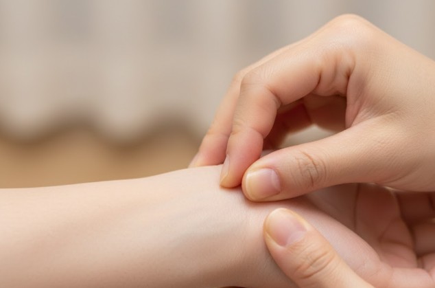 特におすすめしたいのが、手首の内側にある「内関(ないかん)」というツボです。手首の曲がり目から指3本分ほど肘に近い、2本の腱の間に位置しています。ここは「心の関所」とも呼ばれ、精神的なストレスからくる胃の不快感や吐き気を鎮める名所です。緊張して呼吸が浅くなっているとき、ここを親指でじわーっと5秒ほど、脈を感じるくらいの強さで押してみてください。不思議と、喉の奥に込み上げてくるような「オエッ」という感覚が引いていくはずです。