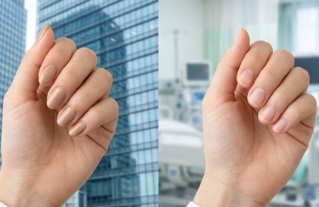 まず、最も基準が厳しいのは医療・福祉・食品・飲食業界です。これらの業界では、ネイルは「おしゃれ」の問題ではなく、ダイレクトに「安全」や「衛生」の問題に関わってきます。例えば、手術や処置を行う医療現場でネイルが剥がれてしまったら?食品加工のラインでパーツが混入してしまったら?それは重大な事故に繋がりかねません。そのため、これらの業界では入社式の時点からネイルは「完全にNG(自爪のみ)」であることが一般的です。透明なマニキュアであっても、劣化して剥がれるリスクがあるため禁止されているケースが多いので、事前にしっかり確認しておきましょう。