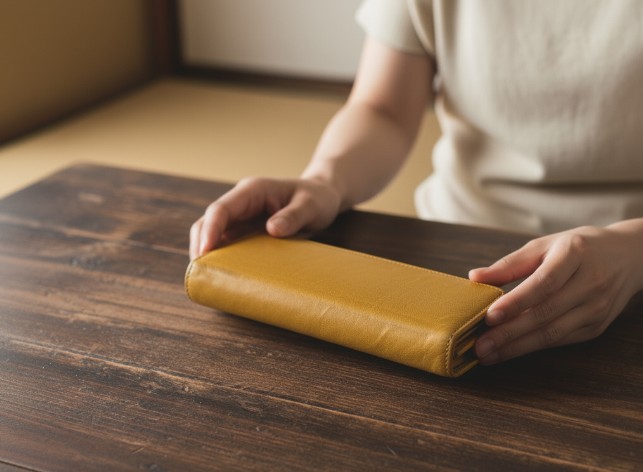 まず、財布の中身をすべて空にし、柔らかく乾いた布で、内外のホコリや汚れを感謝の気持ちを込めて優しく拭き取ります。
