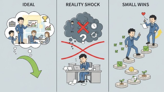 でも、私からお伝えしたいのは、「新入社員が最初から完璧に動けるなんて、会社側も思っていない」ということです。今はまだ、仕事の流れを覚え、職場の雰囲気に慣れることが最大のミッションです。今の自分にできる小さなこと、例えば「電話を明るく取れた」「資料の誤字脱字を1つ直せた」といった「小さな成功体験(Small Win)」を意識的に数えてみてください。焦りから自分を追い込みすぎると、心はますます疲弊してしまいます。まずは「今日1日、遅刻せずに席に着けた」という事実だけでも、自分を褒めてあげていいんですよ。少しずつ、今の自分のペースを受け入れていくことが、この時期を乗り越える鍵になります。