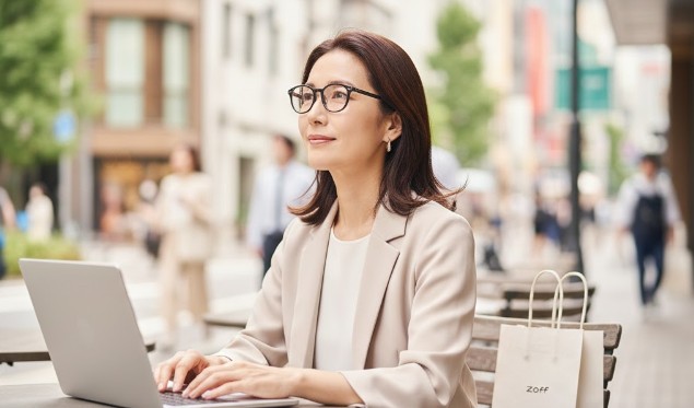 Zoffの大きな特徴として、多くのユーザーから支持されているのが、ブルーライトカットのオプションが無料(追加料金0円)で追加できる点です。 現代の生活では、仕事でのパソコン作業はもちろん、プライベートでのスマートフォン操作など、デジタルデバイスから発せられるブルーライトに長時間さらされることが日常となっています。遠近両用メガネを検討する方の多くも、こうした「近くのデジタル画面」を見る時間が増えたことがきっかけの一つでしょう。 他社、特にJINSでは高性能なブルーライトカットレンズは有料オプション(+5,500円)となるため、追加費用なしで目の負担を軽減できる機能が付加できるのは、Zoffの非常に大きなメリットと考えられます。